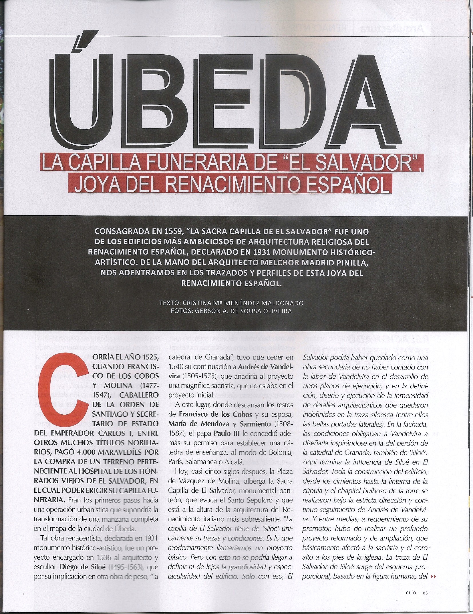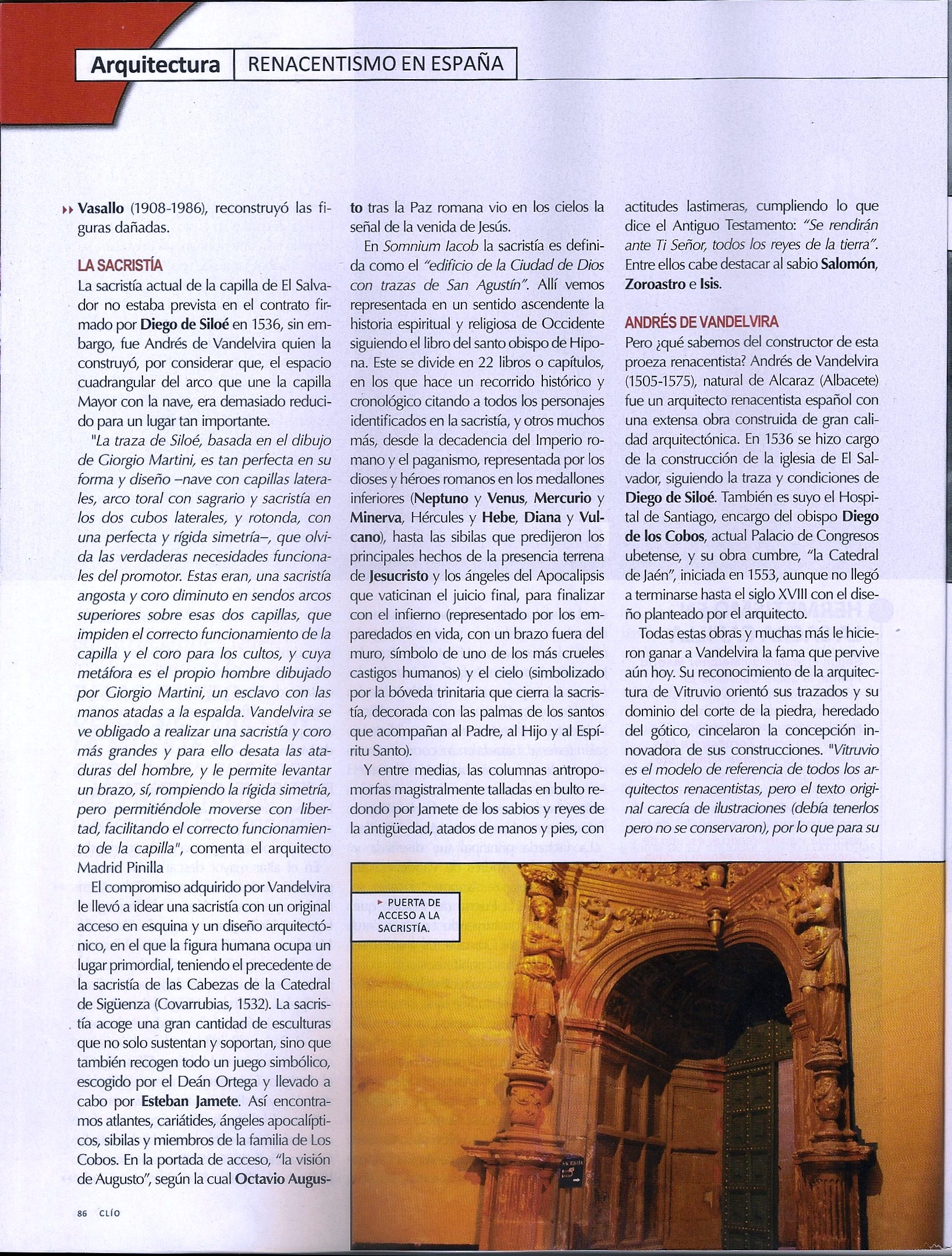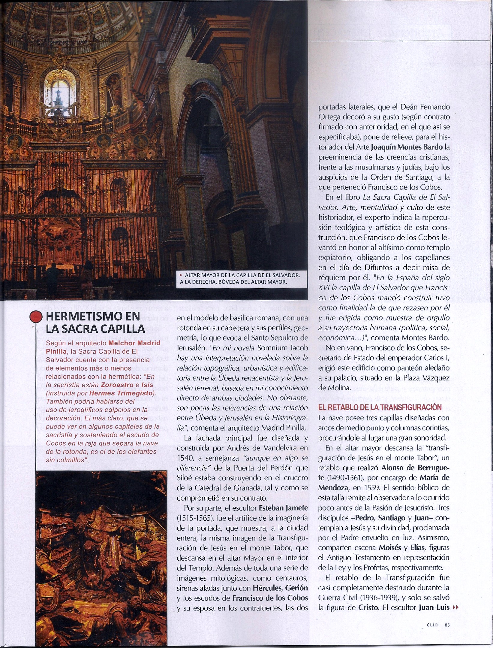 A continuación se reproduce la transcripción del texto del artículo sobre la Sacra Capilla de El Salvador aparecido en el número de diciembre de la revista CLIO HISTORIA. Se han incluido unas figuras que estaban previstas, pero que finalmente no aparecieron.