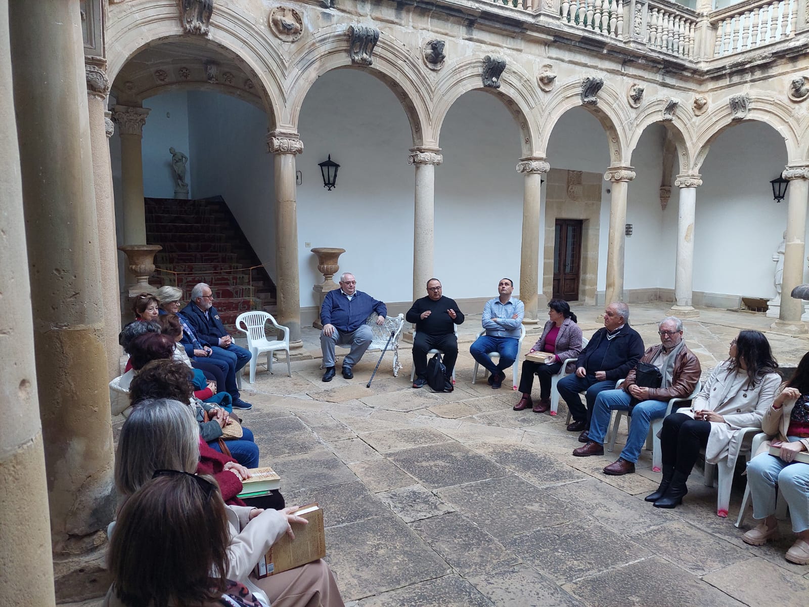 El pasado viernes, 28 de marzo de 2025, tuve el inmenso placer de asistir a un encuentro con el club de lectura de Canena para charlar acerca de «SOMNIVM IACOB de Alonso de Vandelvira», la novela, o ensayo novelado, más bien, donde dejé por escrito buena parte de mis investigaciones durante muchos años acerca de la figura de Andrés de Vandelvira, su obra arquitectónica y su vida personal. Nos reunimos en el majestuoso patio del castillo de Canena, una de las muchas obras que el alcaraceño diseñó y edificó para su mecenas D. Francisco de los Cobos, que sirvió de modelo para alguna de las cuestiones tratadas durante el ameno diálogo de más de hora y media, y que por mí hubiera continuado, pero el frio ya nos acuciaba a resguardarnos.